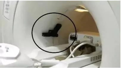 2017年,在印度勒克瑙市的Ram Manohar Lohia醫(yī)院發(fā)生了一起磁共振槍擊事件。當(dāng)時,印度北方邦紡織部長Satyadev Pachauri在哈多伊地區(qū)參加政治集會時暈倒,隨后被送往該醫(yī)院,在醫(yī)生的建議下接受磁共振檢查。當(dāng)Pachauri進(jìn)入檢查室時,陪同他的警衛(wèi)人員無視工作人員警告,強行進(jìn)入磁共振檢查室。結(jié)果他一踏進(jìn)檢查室,上了膛的槍就被磁力從警衛(wèi)身上“奪”了下來,飛向具有極高磁場的磁共振設(shè)備,卡在了機器里。據(jù)報道,這臺設(shè)備價值5千萬盧比(約合480萬人民幣),修理費用大約需要400-500萬盧比(約合38萬-48萬人民幣),超出了它的年度維修合同。