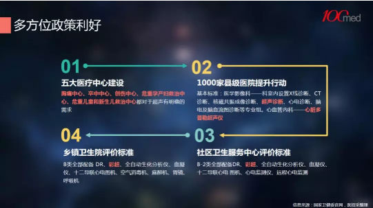 駱士濤總經(jīng)理在會議上提到,從2016年開始,各省相繼出臺相應(yīng)政策來加強(qiáng)基層建設(shè),國家也在去年和今年陸續(xù)出臺相關(guān)標(biāo)準(zhǔn)規(guī)定,這些年基層尤其以鄉(xiāng)鎮(zhèn)衛(wèi)生院為代表的市場是超聲行業(yè)最大的紅利市場。所以目前來看,超聲市場的紅利主要來自于基層、五大醫(yī)療中心建設(shè)以及財(cái)政支持的1000家縣級醫(yī)院的能力提升這三個(gè)方面,最大的來源是基層,包括鄉(xiāng)鎮(zhèn)衛(wèi)生院和社區(qū)醫(yī)院。