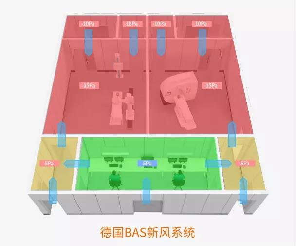 西門子醫(yī)療德國(guó)抗疫BAS新風(fēng)方案,使操作室從原來的“黃區(qū)”半污染區(qū)變?yōu)榘踩摹熬G區(qū)”清潔區(qū)