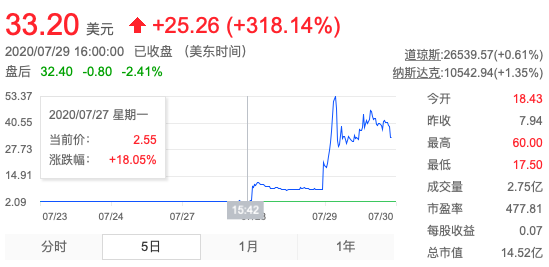 三天猛漲1480%,反映了市場(chǎng)對(duì)于柯達(dá)的強(qiáng)烈期望。期待柯達(dá)別讓人失望。