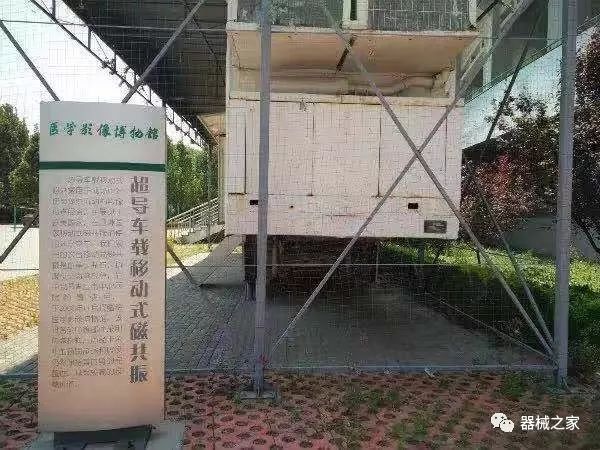 博物館南側(cè)放置著一臺(tái)車載移動(dòng)式磁共振。這臺(tái)磁共振是由美國(guó)生產(chǎn),當(dāng)時(shí)用于海灣戰(zhàn)爭(zhēng)戰(zhàn)場(chǎng)。戰(zhàn)爭(zhēng)結(jié)束后,由山東省青島市中心醫(yī)院購(gòu)買,使用至2009年退役后在博物館展出。