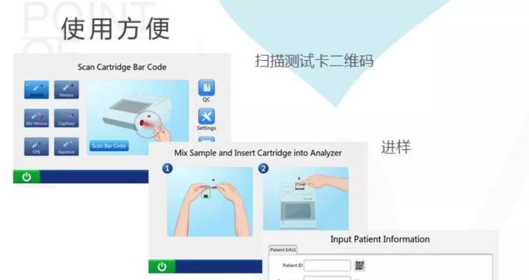 但是現(xiàn)在,使用POCT診斷設(shè)備,在病人的身邊就能直接抽血化驗(yàn),2-3分鐘可得出檢測(cè)結(jié)果,醫(yī)生當(dāng)場(chǎng)根據(jù)結(jié)果制定治療方案。