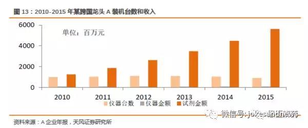 從上圖看出,A企業(yè)的試劑和儀器如果按金額計(jì)算,超出10:1,但由于以前裝機(jī)的儀器會產(chǎn)生累計(jì)疊加效應(yīng),因此不能單純相比,要根據(jù)儀器保有量測算修正。