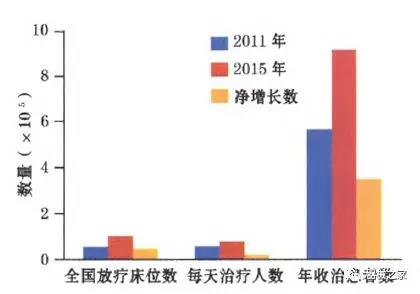 放療床位數(shù)、每天治療人數(shù)和年收治患者數(shù)增長(zhǎng)情況