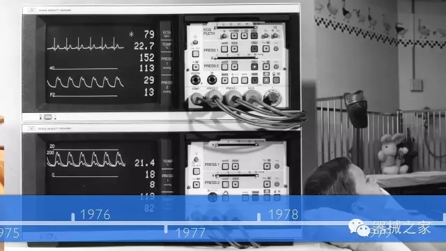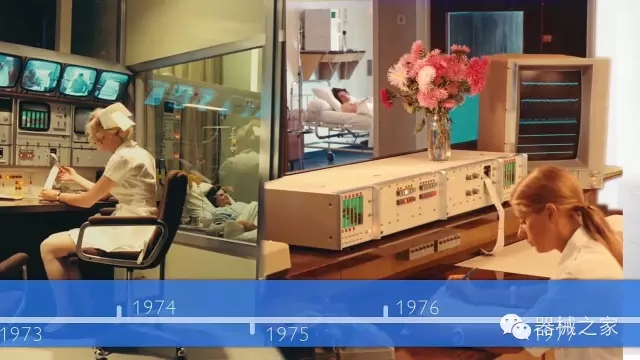HP (后被飛利浦公司收購(gòu))病人監(jiān)護(hù)儀始于1973年,那時(shí)的中央站還有攝像頭能觀察到病人情況,好先進(jìn)啊