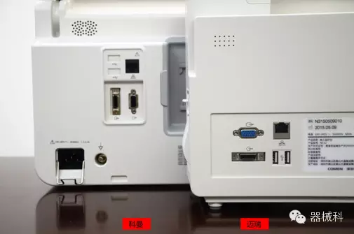 整體來看,科曼產(chǎn)品比邁瑞體積小得多。經(jīng)過測量發(fā)現(xiàn),科曼產(chǎn)品體積為305mm×245mm×123mm,重3.6kg;邁瑞是310mm×270mm×125mm,重3.8kg??坡L度更小,寬度更小,高度更小。在重量上也少了0.2kg。體積大,看起來壯觀,但難免笨重;體積小,看起來精巧,但可能不實用。小型化的機身攜帶方面,但可能會影響到手感。