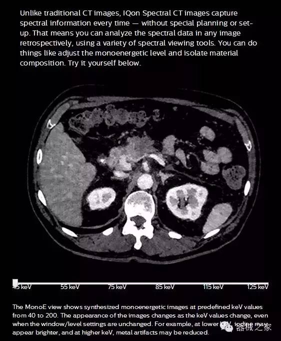 IQon光譜CT能夠按照需求提供光譜量化和工具,并能通過簡單工作流程、在低劑量下對結(jié)構(gòu)進(jìn)行定性分析